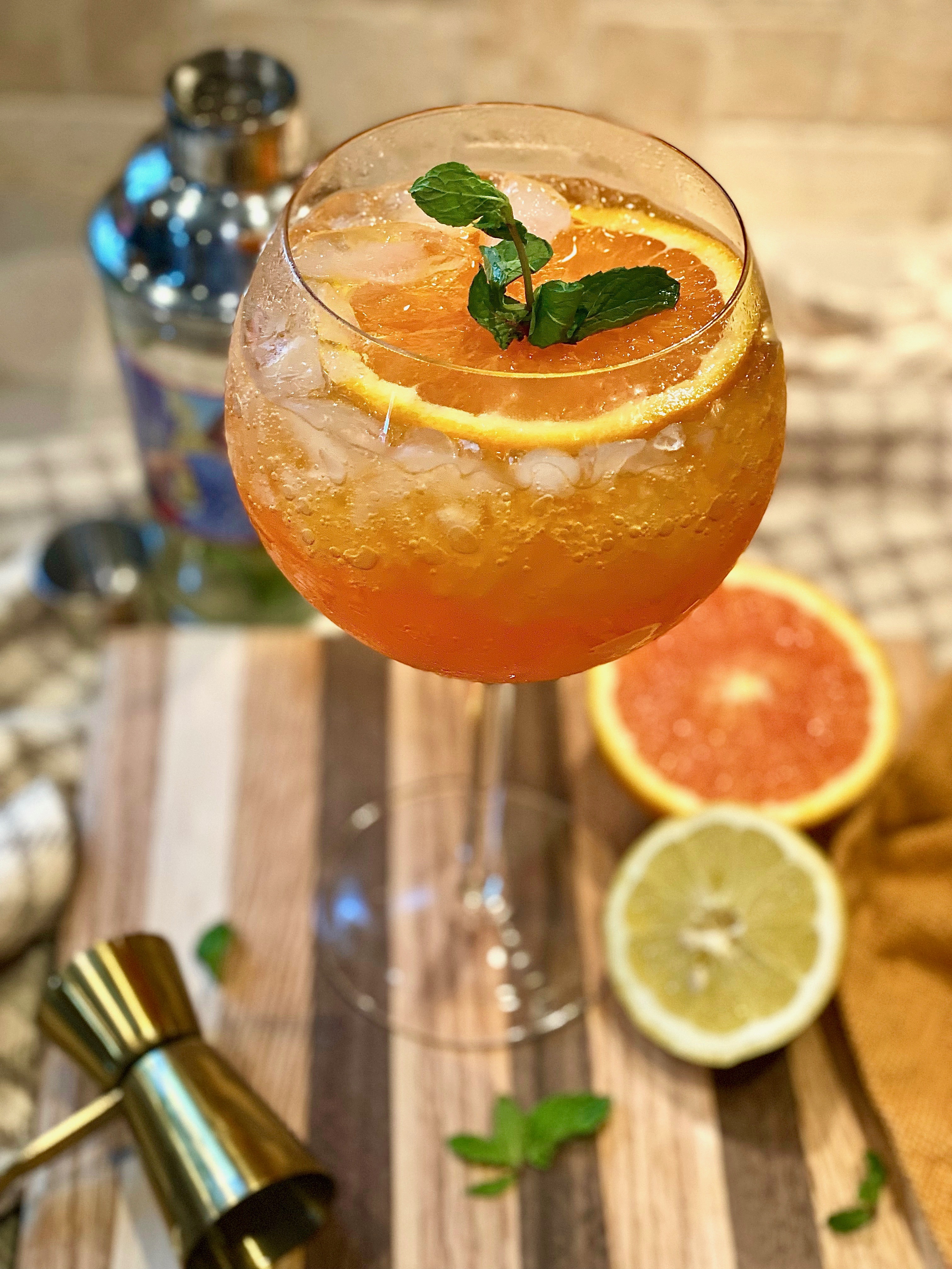 I think the biggest part about creating cocktails for a lot of us is the aesthetic aspect of it. We love taking all of those stunning photographs, feeling fancy, and really just romanticizing an hour of our day. The act of creating a cocktail of any kind, color, and flavor, along with enjoying it after is an activity that we reward ourselves with just because we can. We might appreciate making ourselves something to sip on after enduring a task we thought we’d never finish, or coming home from a long, hard day at the office. If you don’t drink alcohol or maybe you can’t consume it at all for medical reasonings, I’m here to show you that you can join in all of the cocktail making excitement without making something you’re not actually going to be drinking. I, myself don’t drink often. However, if I do and it’s not coffee liquor and cream, it usually consists of something refreshing with slices of fruit and good bubbly effervescence. Never anything strong either because that’s just not my jam; it hasn’t been for many years. Whenever the weather turns warm and the sun is shining strong, it makes me think of fresh citrus all around.