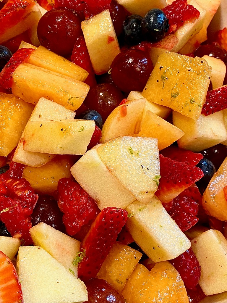 If you’re enjoying summer and want to clean out your fridge with me before your weekly farmers market trip, then this is the way to do it Diamonds! Grab yourself a big bowl of sweet, tangy, and tart fruit salad and soak up the summertime. Unfortunately, these months don’t last forever!