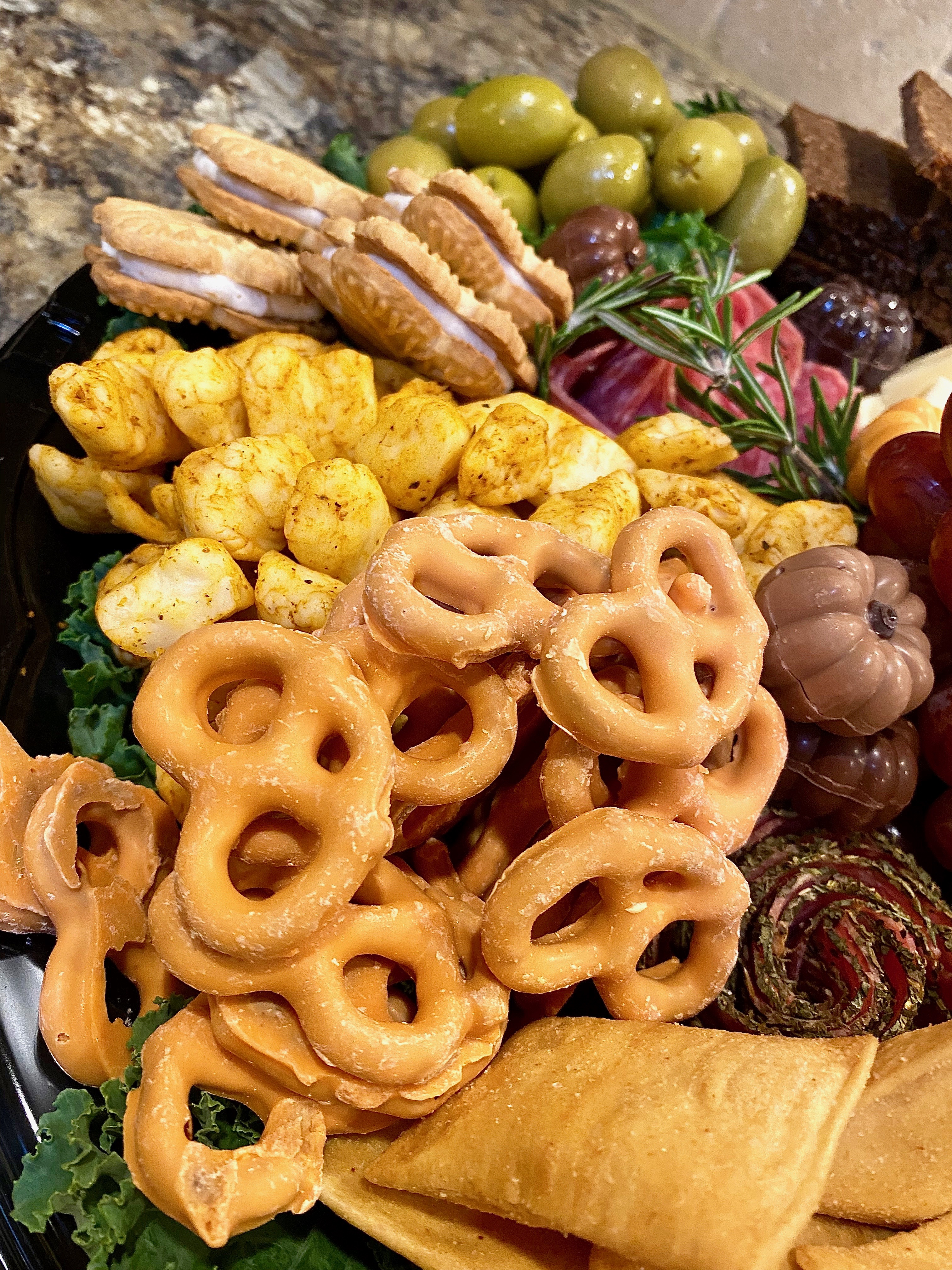 In my last post I shared with you Diamonds a recent wedding that I catered, filled with charcuterie boards that decorated an entire table from left to right, and front to back with everything you could ever dream of. Today, I am letting you in on the smaller and more intimate seasonal boards that I build for all different occasions. I had two board orders this past month and a 1/2 pan of buffalo chicken pasta besides the wedding on the 2nd.