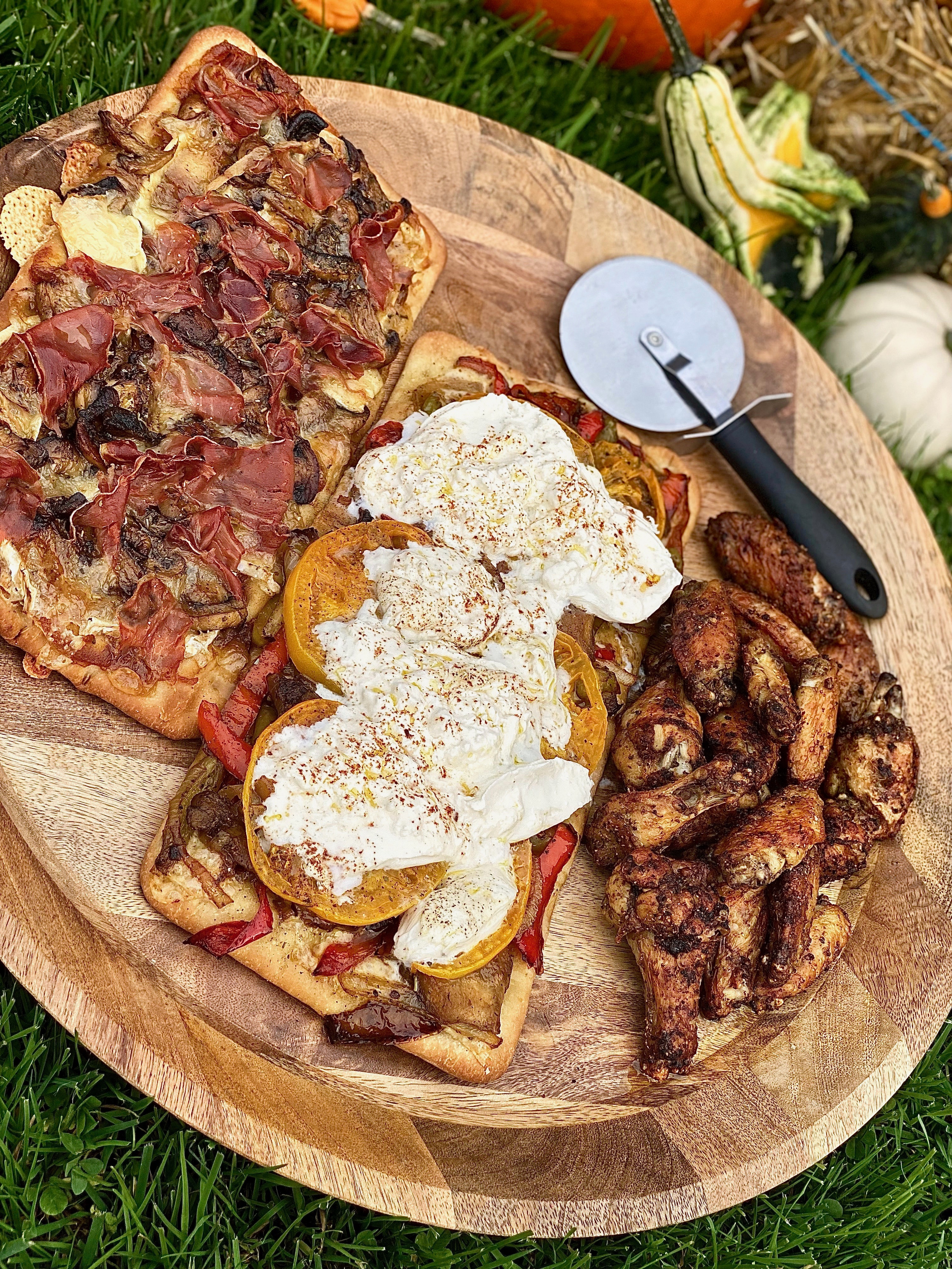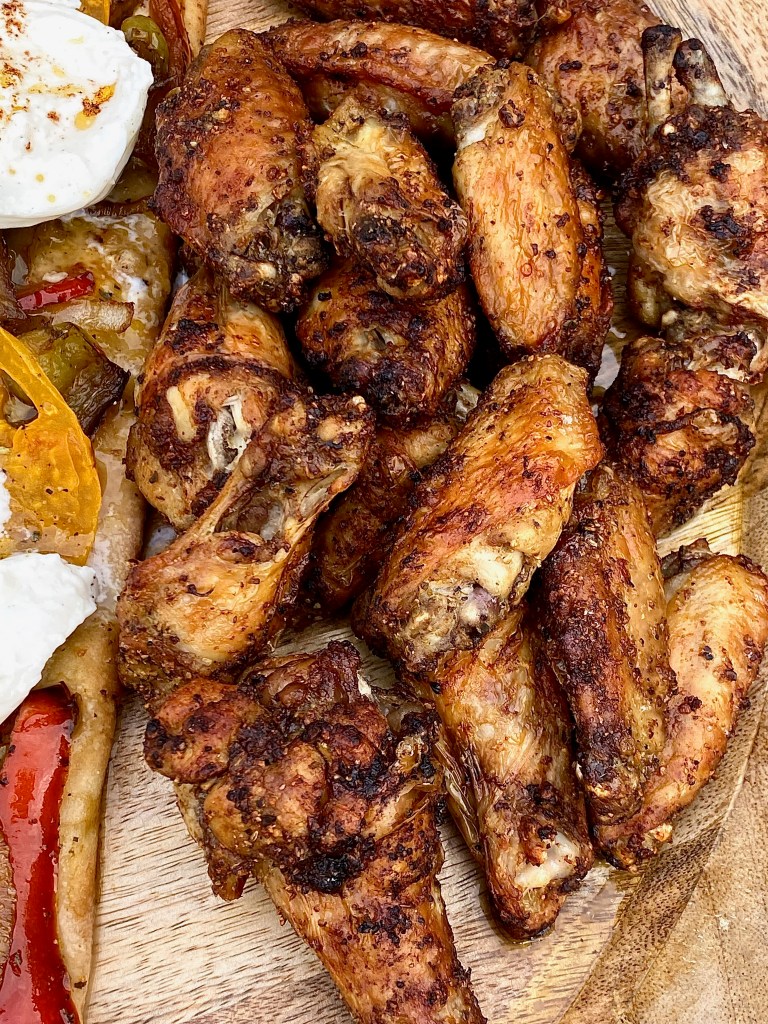 HOMEMADE FLATBREADS AND AIR FRIED CHICKEN WINGS.