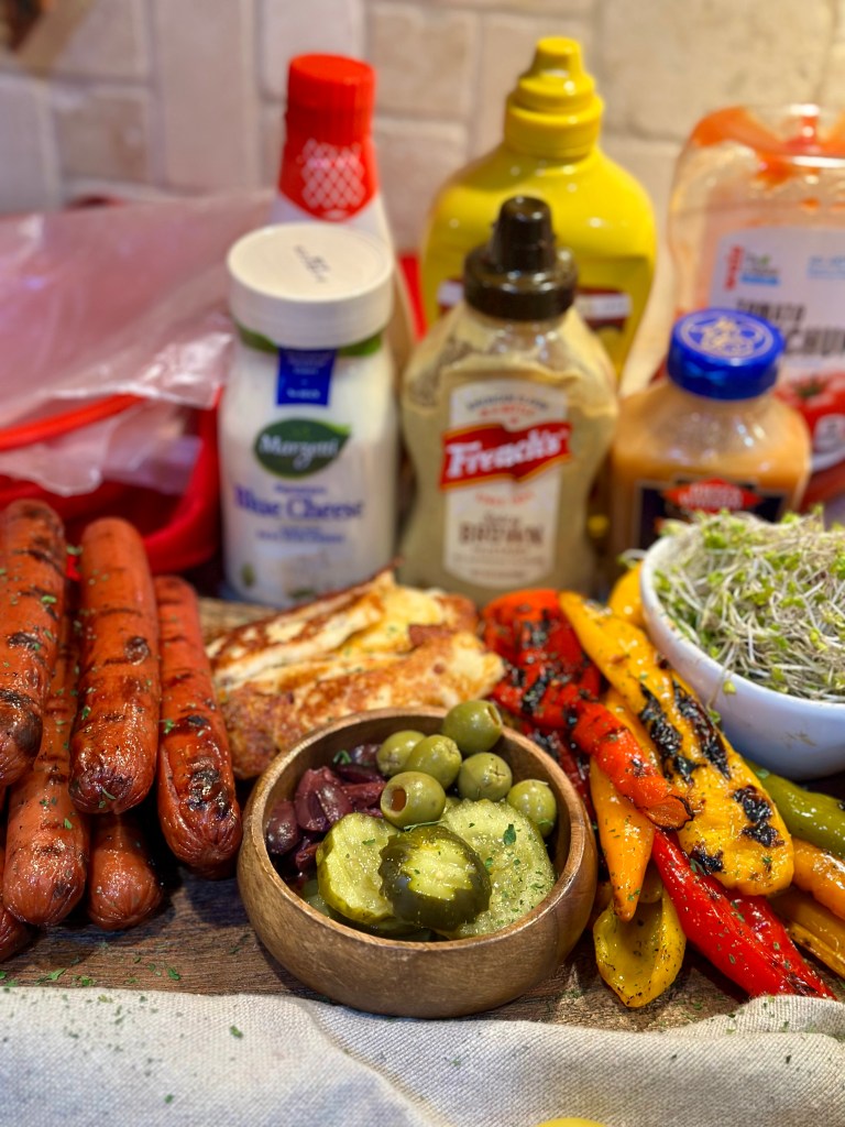 - I prefer to get homemade hotdogs from my farmers market that are filled with various delicacies such as cheese, bacon, onions and peppers, or jalapeño if you’re a spice lover like I used to be! The combination we chose for this evenings bar was cheddar and bacon, of course! It’s a classic and that’s the vibe we’re going for.