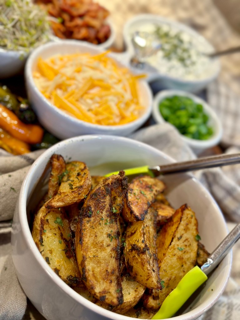 - Lastly, you simply cannot have a hot dog bar without some sort of potato as the side, whether that would be potato chips, French fries, or a baked potato. For this specific bar I went with a classic steak fry. I was obsessed with making these this summer as well.