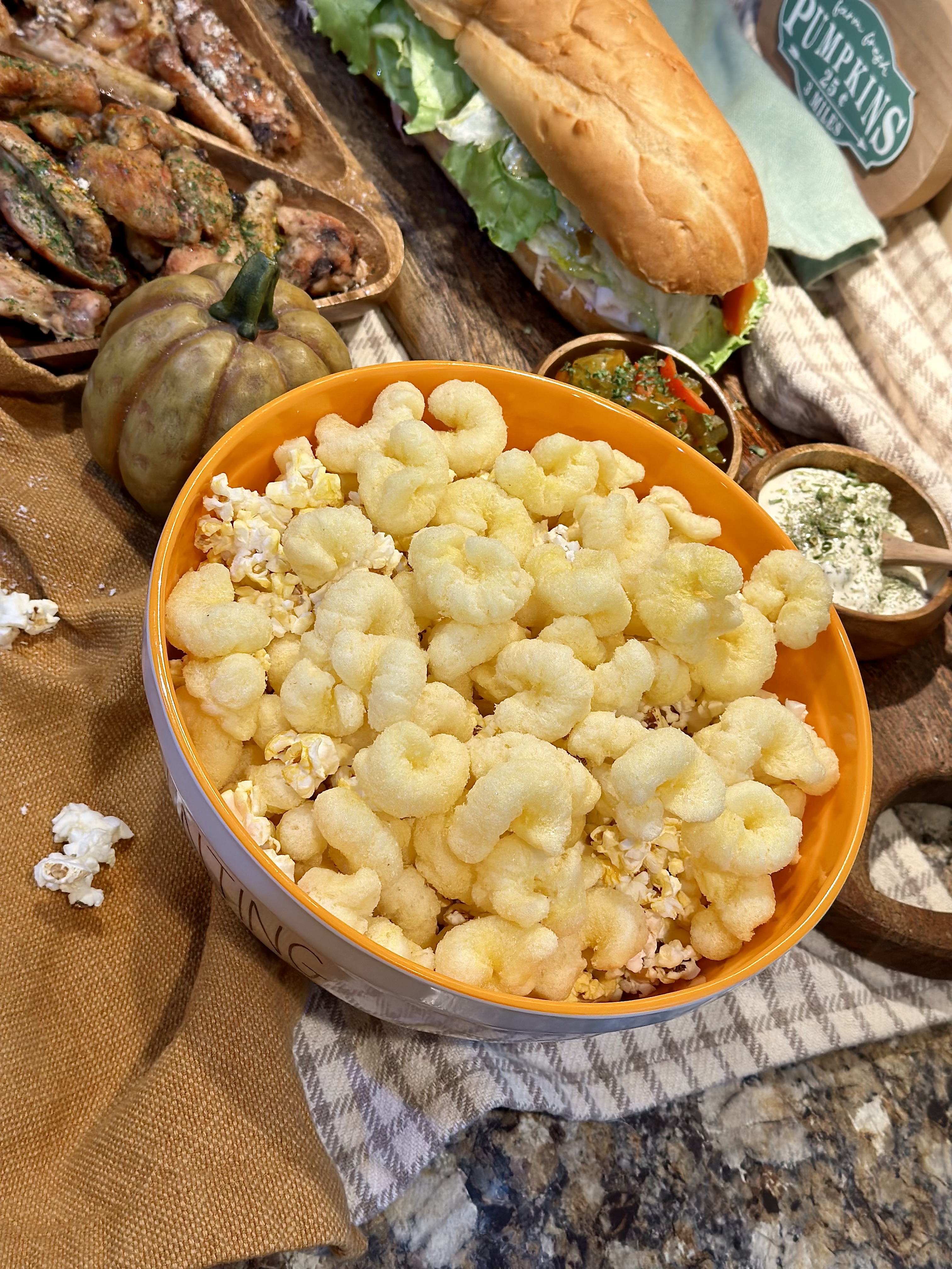 You always need sides and snacks when it comes to party food, so for this combination I have a popcorn mix.