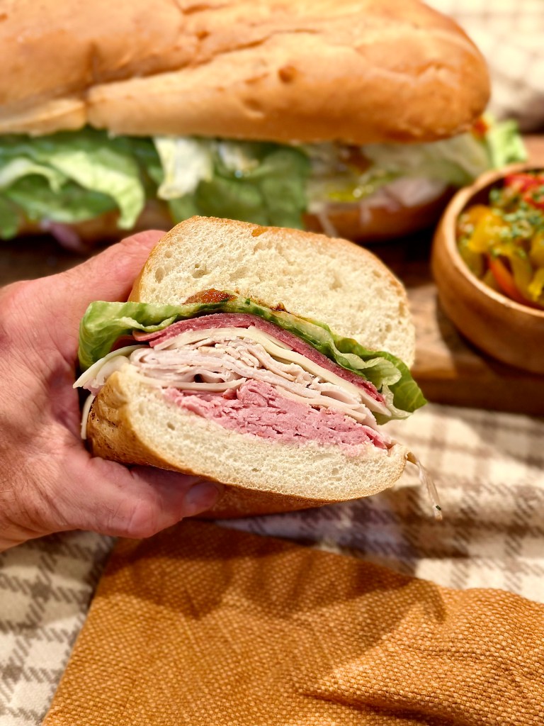 - A crunchy, creamy, soft, pillowy, and meaty hoagie is exactly what has always hit the spot for me. I love them. Hoagies, sandwiches, wraps; they were always my thing! A great hoagie comes on a soft delicious roll filled with thinly slices of ham off the bone, premium turkey breast, American cheese, salami, iceberg lettuce, roasted sweet peppers, and thinly sliced tomatoes, of course. Garnished with mayo, salt, pepper, parsley, and oregano. Oregano is necessary on any kind of hoagie.