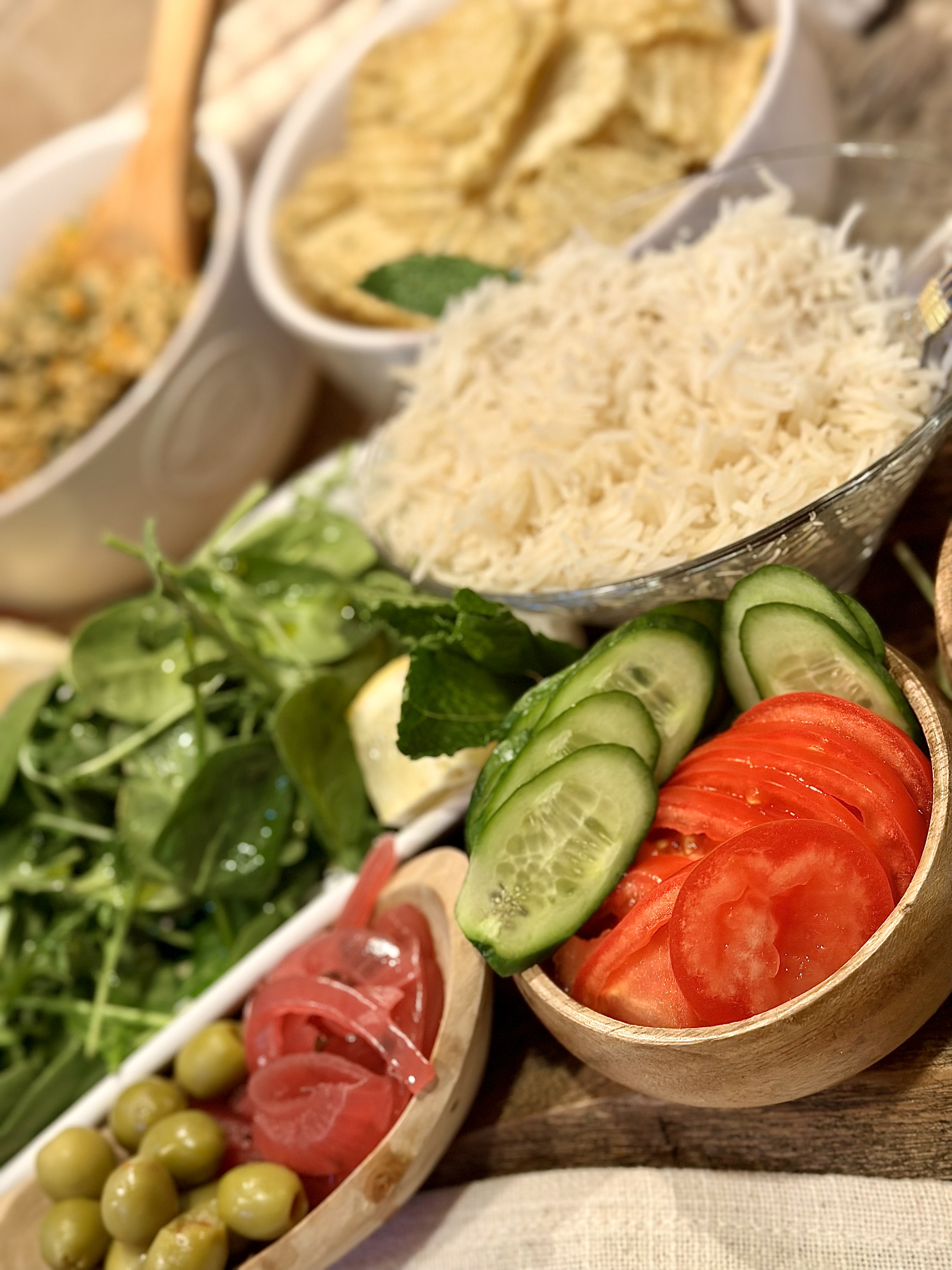 As you Diamonds can tell from my last post, I’m on a full blown Mediterranean kick! If you get obsessed with certain foods or hyper-fixate on specific cuisines for a certain period of time, then this board is definitely for you. Even if this style of eating isn’t for you, you can easily switch out the ingredients and enjoy it in the same concept of a “build your own board”! Italian style would be a perfect way to go by serving pieces of grilled pizza dough, pepperoni rings, ground sausage, fresh mozzarella cheese, olives, mushrooms, onions, jalapeños, sweet peppers, and pineapple for some sweetness. Yum! That may be a post I’ll have to throw at you Diamonds very soon. Hehe. I want you all to remember that anything I show you could become an idea uniquely of your own by changing just a few things. My creativity can open yours up immensely and honestly, that’s the goal! Food is for fun and enjoyment! It never has to be as serious as you may think it does.
