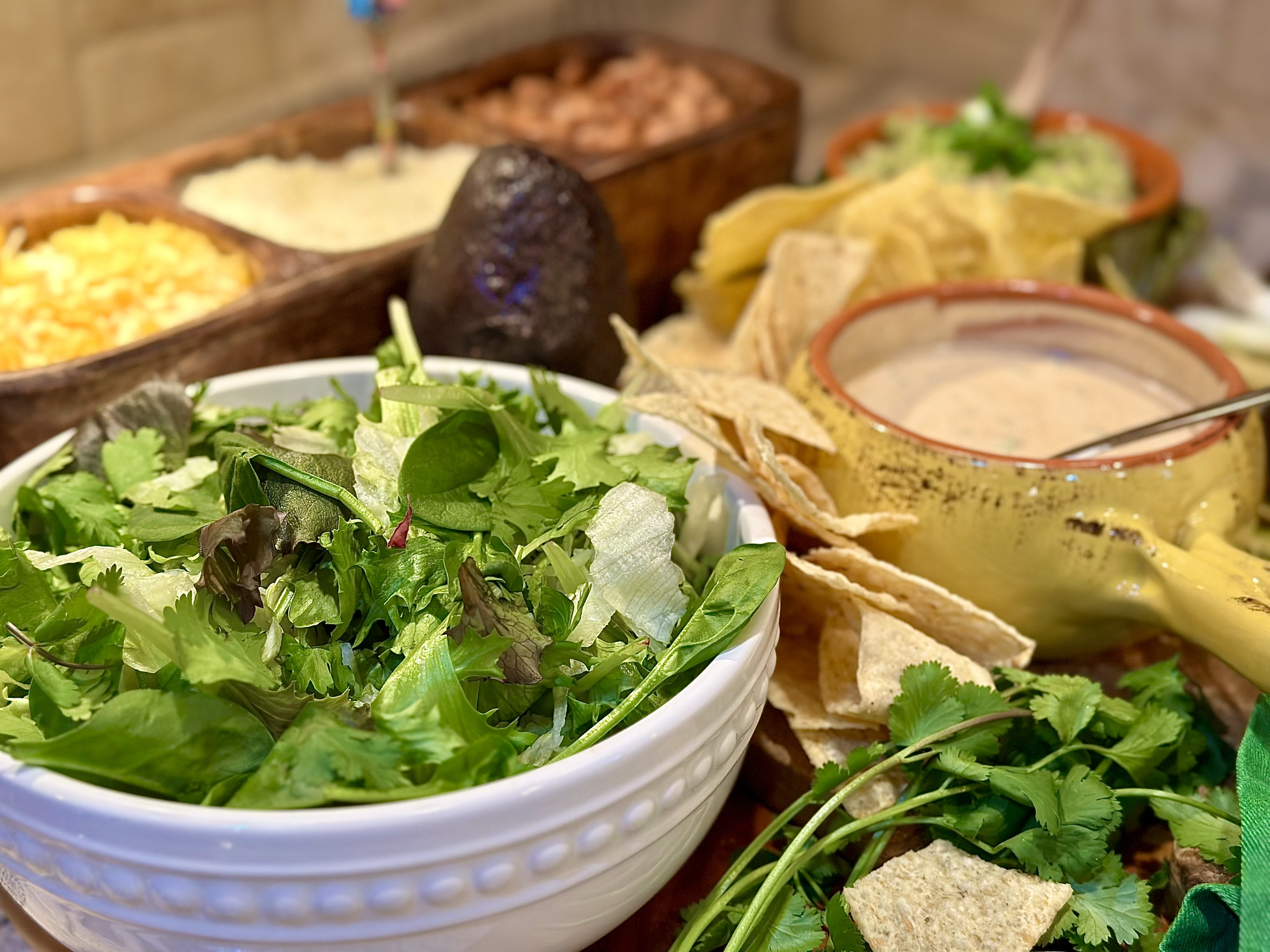 You could take this taco salad bar to complete insanity in the best way possible by adding in grilled shrimp, grilled chicken thighs, shredded carnitas, roasted poblano corn, mango or pineapple salsa, different types of hot sauces, and even a wide variety of beans to choose from. The list is always endless when building bars or boards! For those of you who have been following me for some time now, you’ll now that that is one thing I continuously preach! You can take my ideas.. the Diamond way, and make them yours. Especially when it comes to concocting salads. Salads of all kinds, can ever be created wrong!
